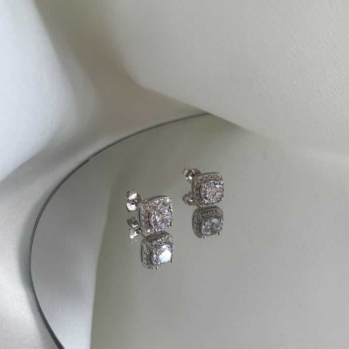 [SHINY]Classic Round Center Stone Stud Earrings