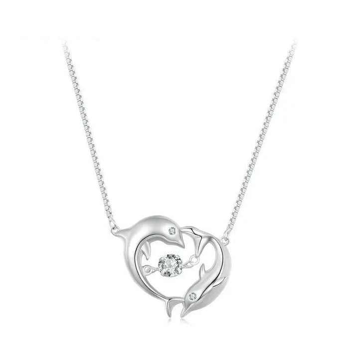 [SHINY]Double Dolphins Necklace Shiny Zircon Love Neck Chain