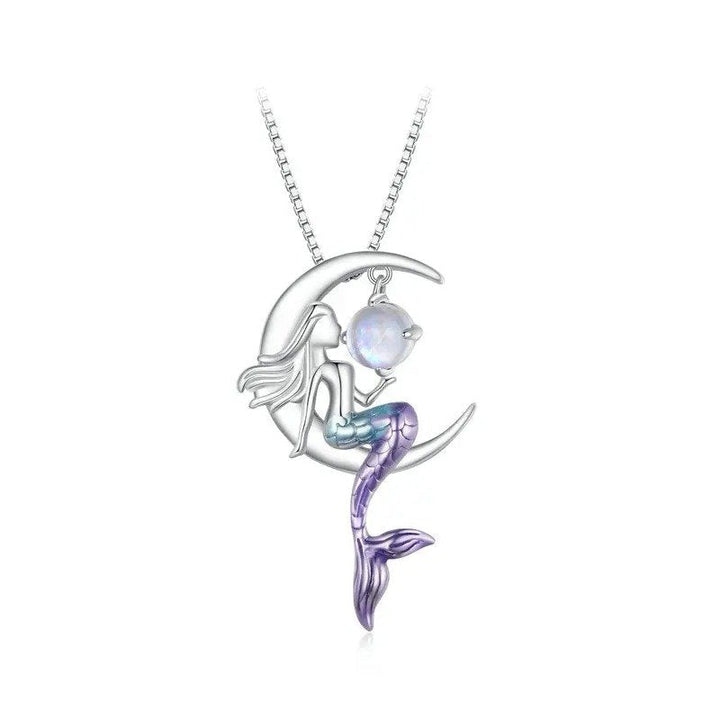 ? ¡¾Description¡¿Mermaid necklace, mermaid sitting on the moon, elegant and beautiful, the tail of the mermaid is dreamy purple which is mysterious. With moonlight stone.