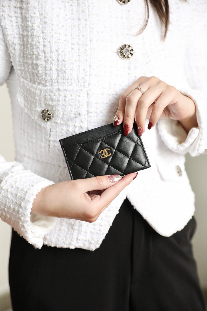 CC CARD HOLDER 11 BLACK CALFSKIN GOLD ICON