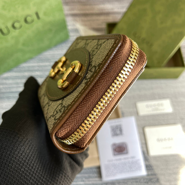 GG HORSEBIT 1955 MINI 11 WALLET BEIGE AND EBONY CANVAS