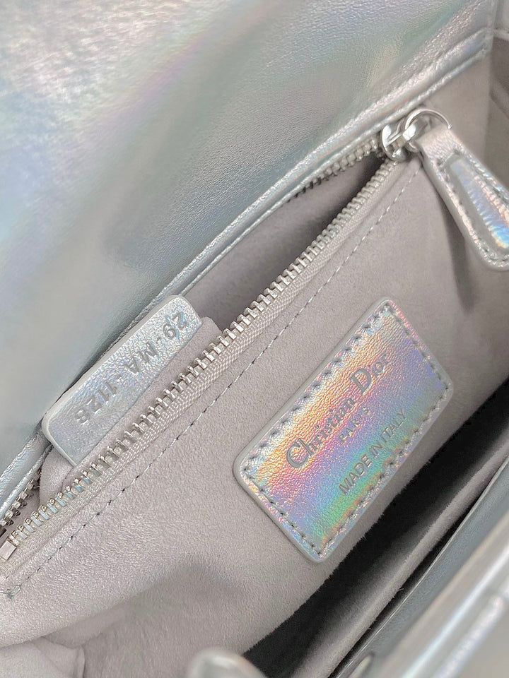 MEDIUM LADY 20 HANDBAG IN SILVER LAMBSKIN