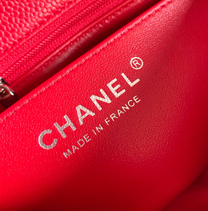 MINI RECTANGLE FLAP BAG 20CM RED CAVIAR SILVER HARDWARE