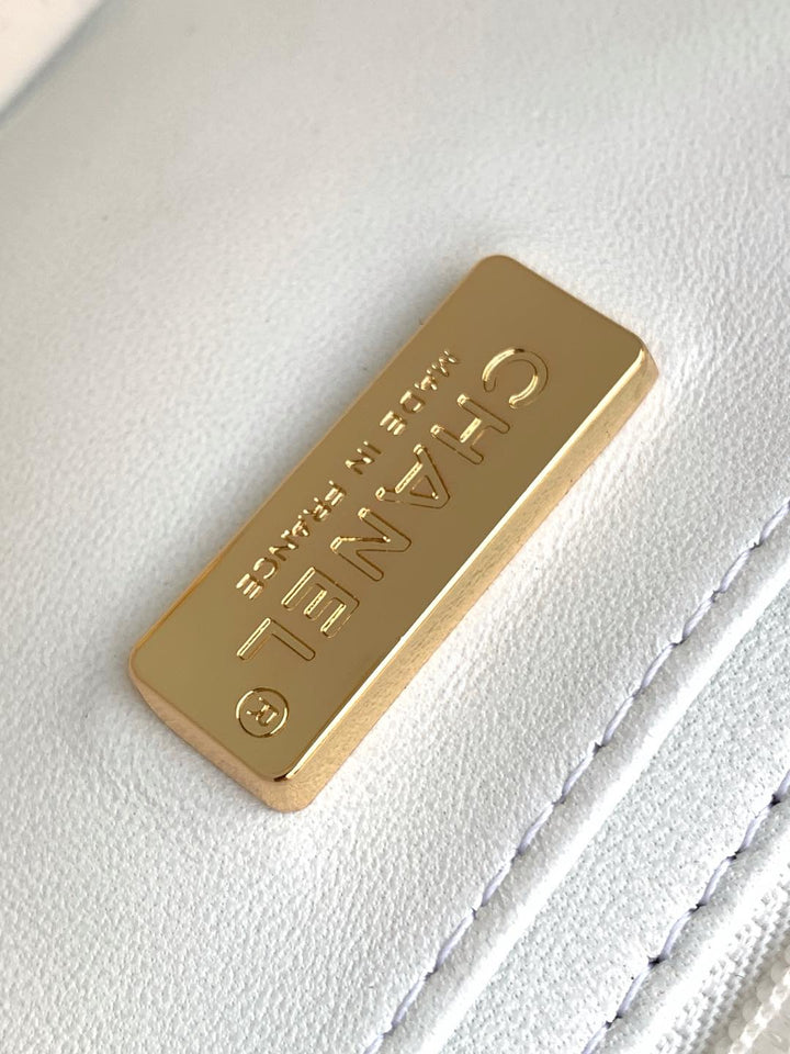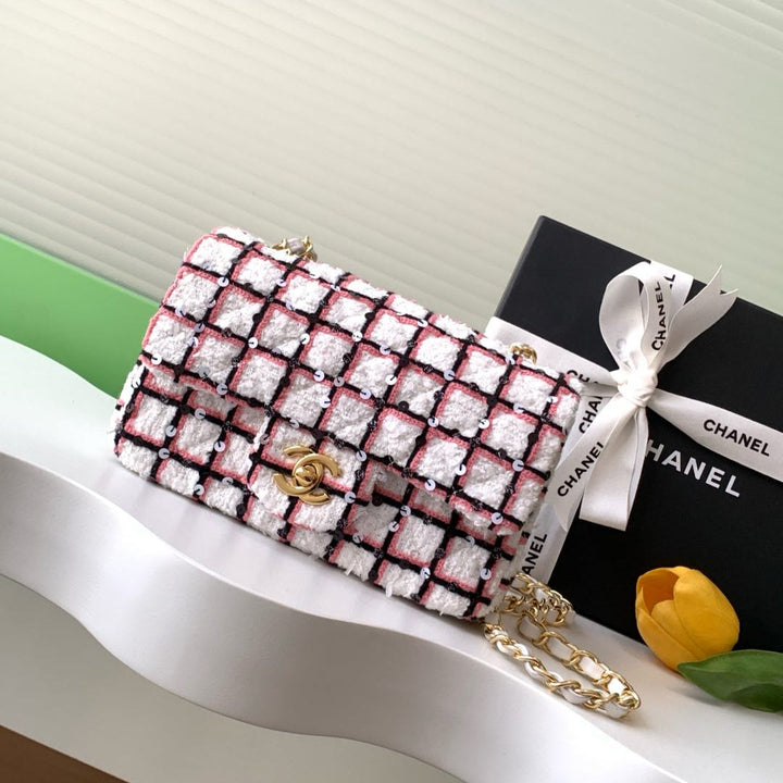 WOOL TWEED FLAP BAG 20 WHITE BLACK PINK ATTACHED SEQUINS 238423